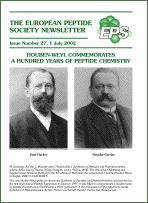 Contents include: Houben Weyl Commemorates A Hundred Years of Peptide Chemistry Conference Reports from 4th Australian Peptide Conference and and Crete Multidisciplinary Workshop "Self-Assembly of Peptides and Proteins"; 27th Lorne Conference; 3rd Hellenic Forum; Peptides in Siena Year 2002 Awards.....