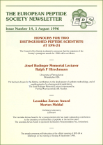 Contents include: 24th EPS, Edinburgh: The Josef Rudinger Memorial Lecture goes to Ralph F Hirschmann, USA and the Leonidas Zervas Award to Morten Meldal, Denmark; "1st Bulgarian Peptide Symposium", Panichishte; "5th Spanish Peptide Meeting", Girona; "Integrated Research on Biologically Active Peptides", Prague; "2nd International Workshop on Enzymatic Synthesis of Amino Acids, Peptides and Derivatives", La Grande Motte; "5th Naples Workshop on Bioactive Peptides", Capri; Paul Hardy (1936-1995), in Memoriam; Peptides in Scotland; Calendar of Relevant Meetings.....