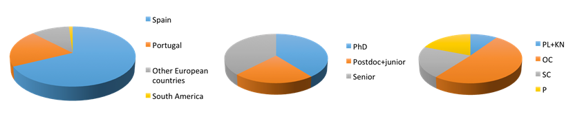 Typical continental weather in Madrid by these dates, foggy, cold mornings and agreeable sunny afternoons, accompanied the 95 attendants during the three EPI days. According to its Iberian character, delegates came mostly from Spain (64) and Portugal (18), but also from other European counties (UK, Italy, France, Servia). The scientific sessions included 2 plenary lectures (45 min), 4 invited keynotes (30 min), 32 oral communications (15 min), 14 sort presentations (5 min) and a poster’s session (12). A good combination of experienced senior researcher, junior investigators, young postdocs and PhD students resulted in dynamic highly (in)formative sessions, with interesting discussions, and in an ideal forum to establishing new collaborations.
